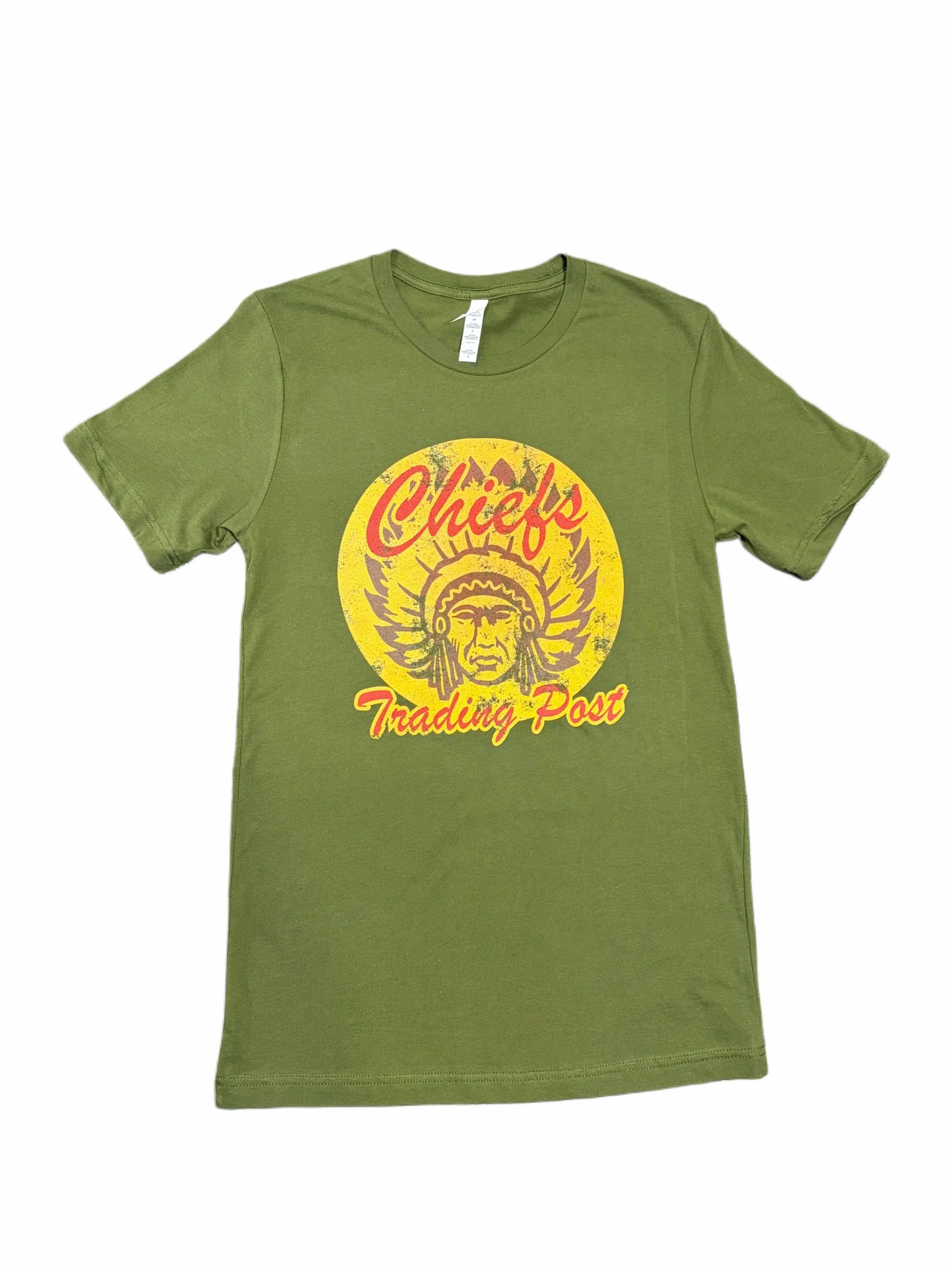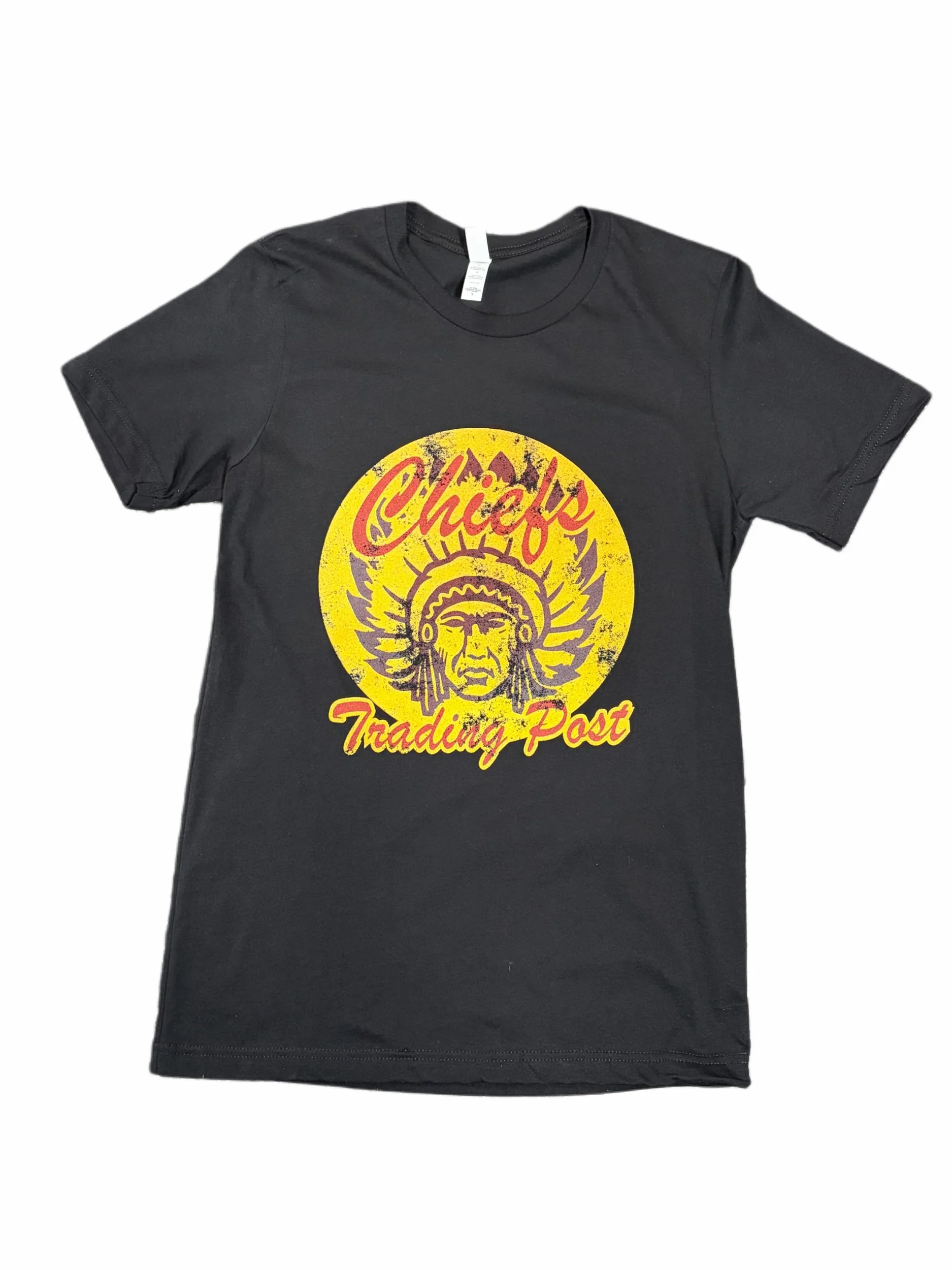Rooted in tradition with a bold Western edge, our Chiefs Trading Post tee brings vintage character to everyday wear. Featuring a distressed graphic and rich, warm tones, this design captures the spirit of old trading post and timeless craftsmanship. Made for comfort and built to stand out, it’s an easy staple for any collection.