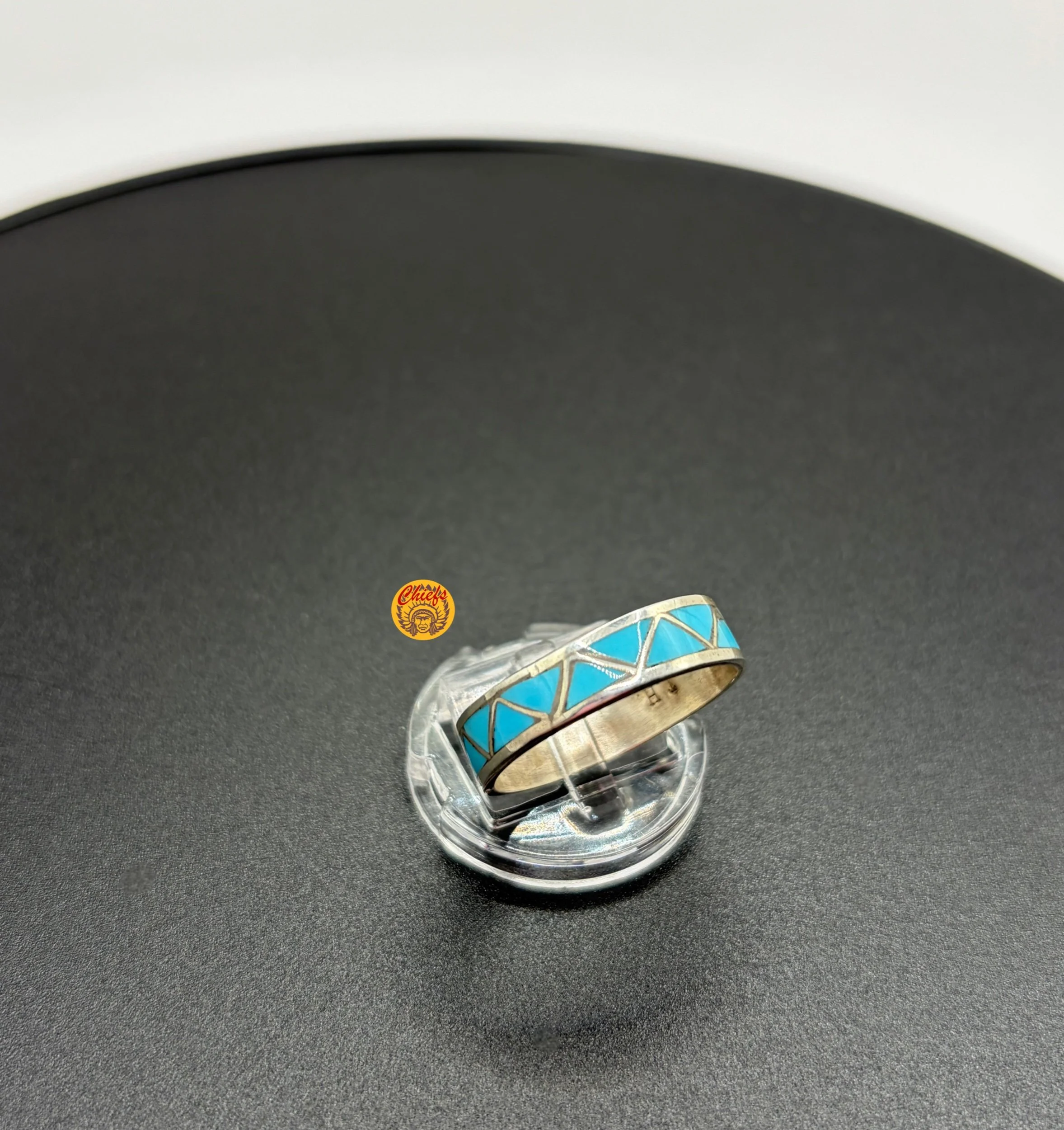 Sleek and modern, this turquoise inlay band features a clean geometric design with vibrant turquoise set into sterling silver.